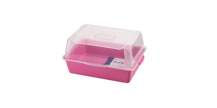 325 美瀝籃 大 透明上蓋,可瀝水,可防塵保存 編號325入數20組/箱.2箱/件尺寸33.5 × 22.5 × 17H cm (含上蓋尺寸)材質PP(聚丙烯)Color紅 / 藍 條碼4710394003254